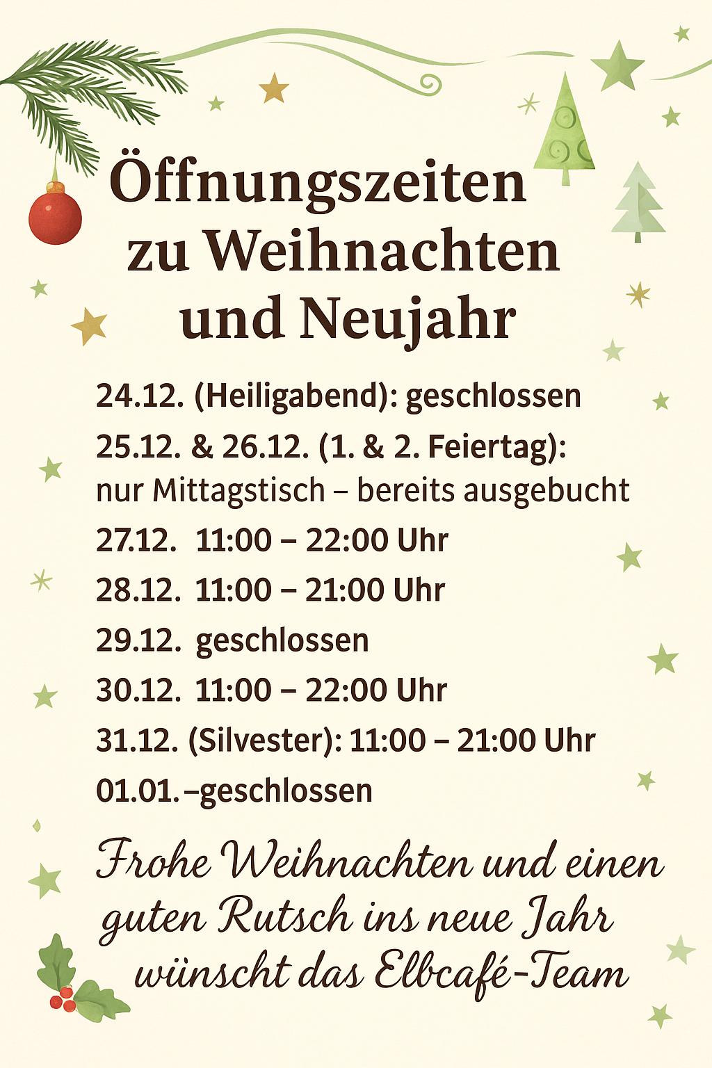 Du kannst nach wie vor Gerichte aus unserer Speisekarte telefonisch zur Abholung vorbestellen. Wir gewähren bei Selbstabholung einen Rabatt von 15 % auf alle in der Speisekarte ausgewiesenen Preise bei Hauptgerichten.